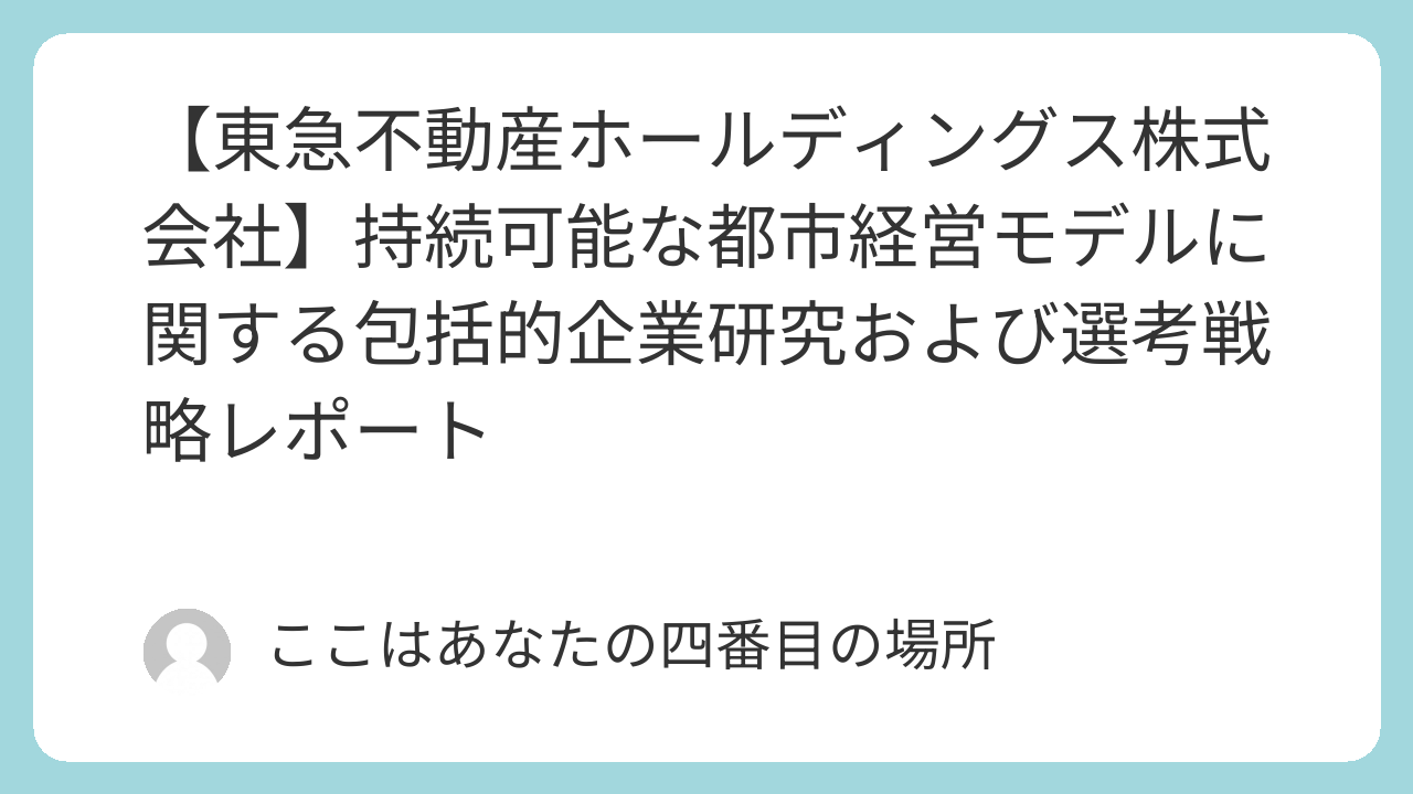本レポートは、東急不動産ホールディングス(以下、東急不動産HD)の役員面接を突破し、確実に内定を勝ち取ることを目的とした専門的な企業研究資料です。