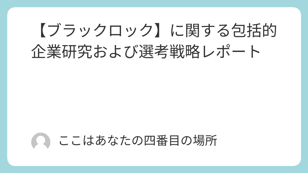本レポートは、キャリアコンサルタントが学生を指導するにあたり、ブラックロック・ジャパンの採用において求められる要素と、その根底にある企業理念を理解し、実践的な助言を提供することを目的としています。