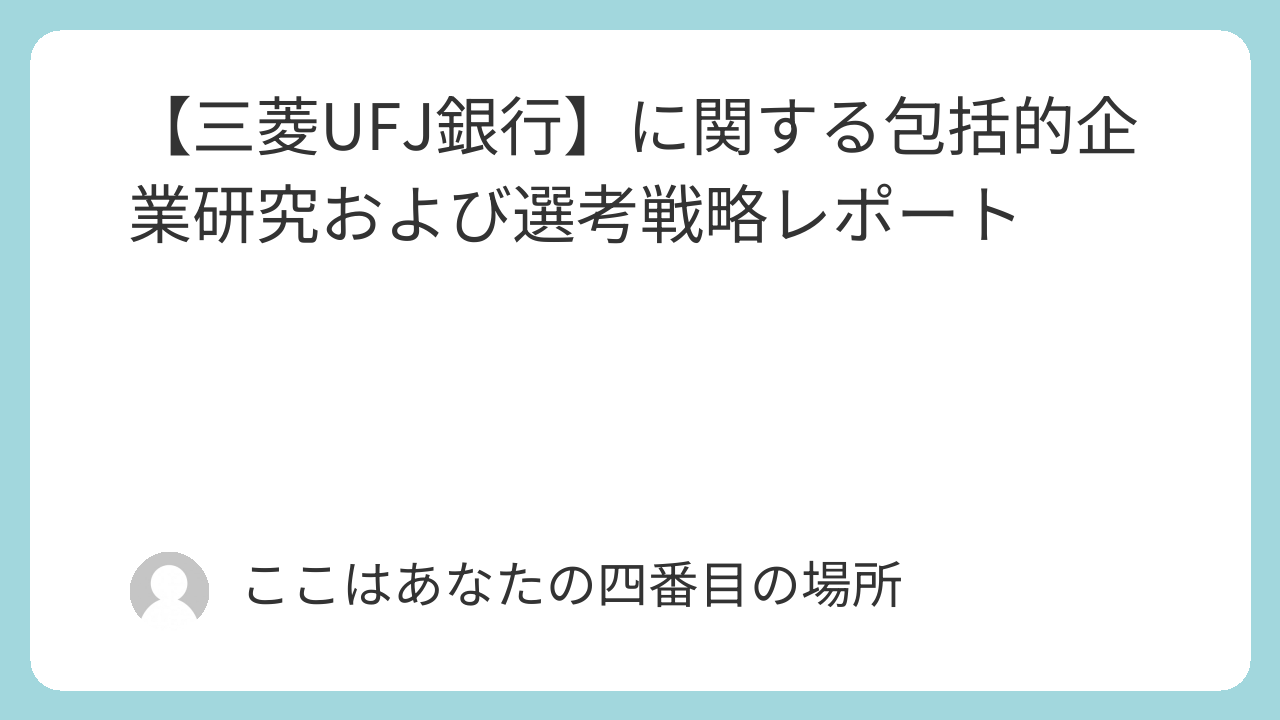 【三菱UFJ銀行】に関する包括的企業研究および選考戦略レポート