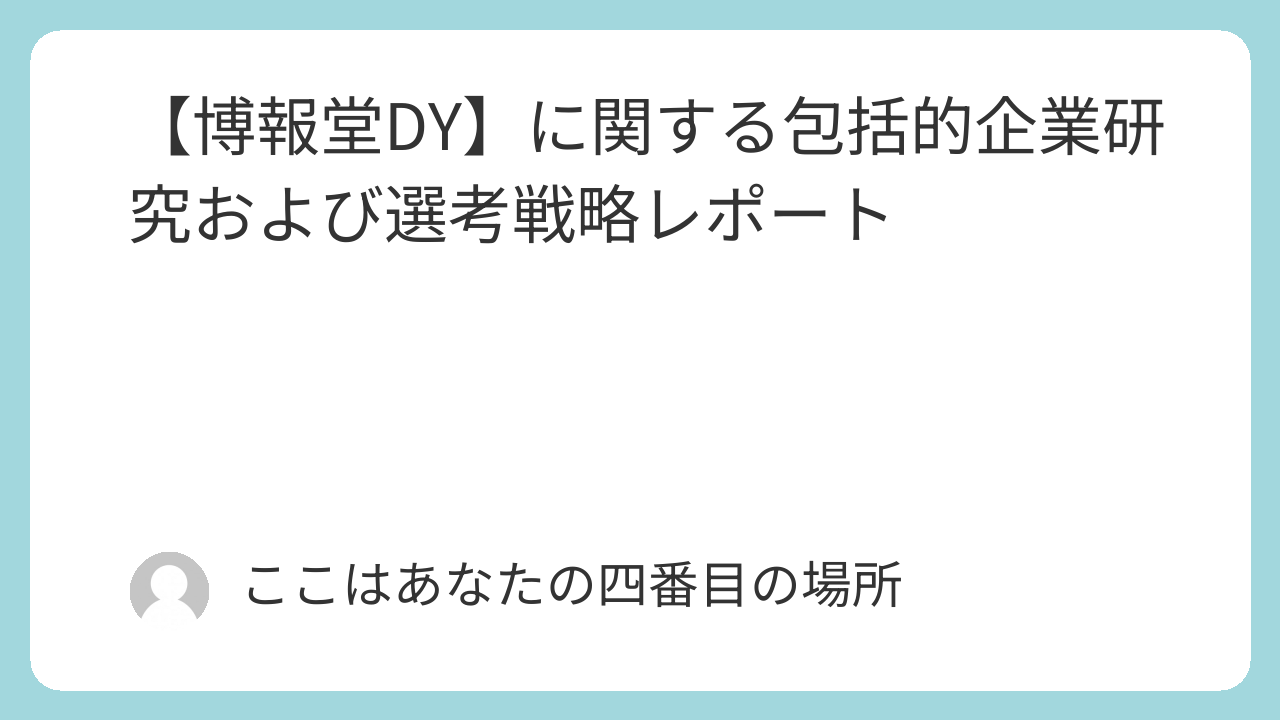 就職活動生諸君においては、本レポートで示したファクトとインサイトを武器に、表面的な企業研究を超えた、本質的な経営課題についての対話を面接の場で展開してほしい。HDYMPが求めているのは、与えられた枠の中で働く人材ではなく、枠そのものを再定義し、新しいメディアの未来を「発明」できる人材なのだから。